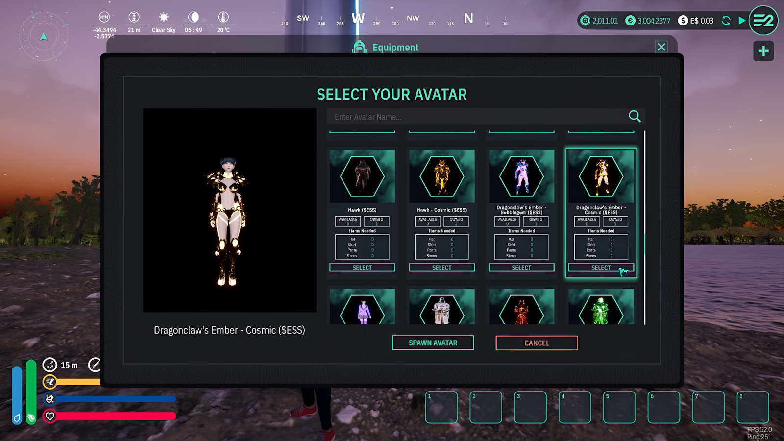 Once you have selected a skin, press SELECT and then SPAWN AVATAR. This will instantly change the appearance of your Character inside E2V1.