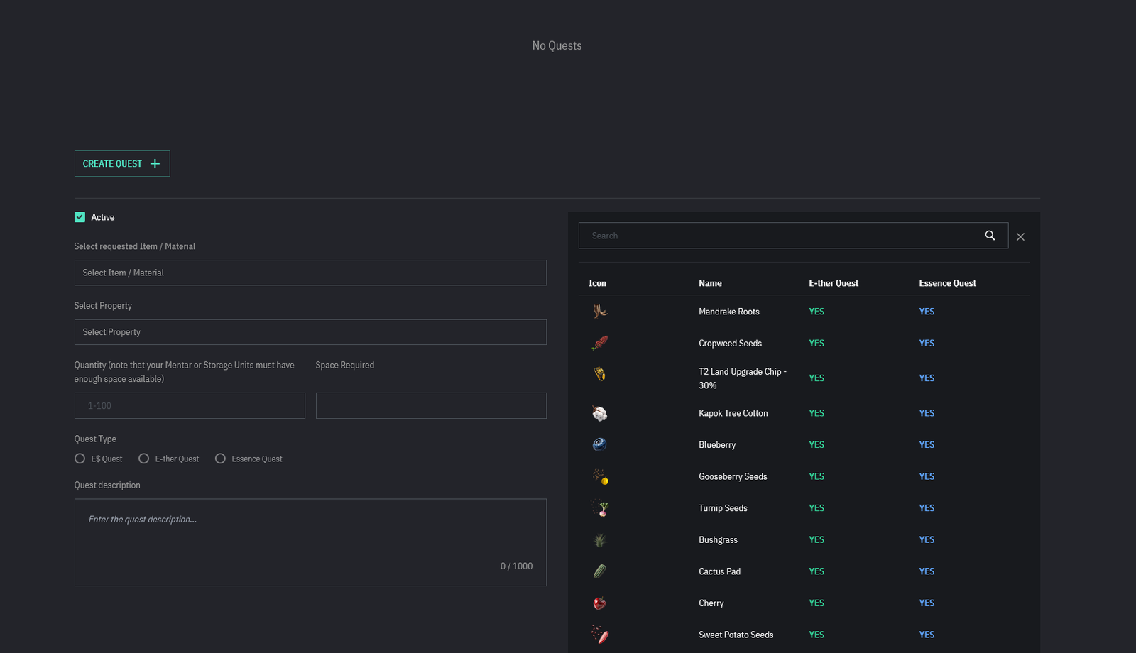 Land Owners, logged in, can create Quests directly on the Earth2 website.